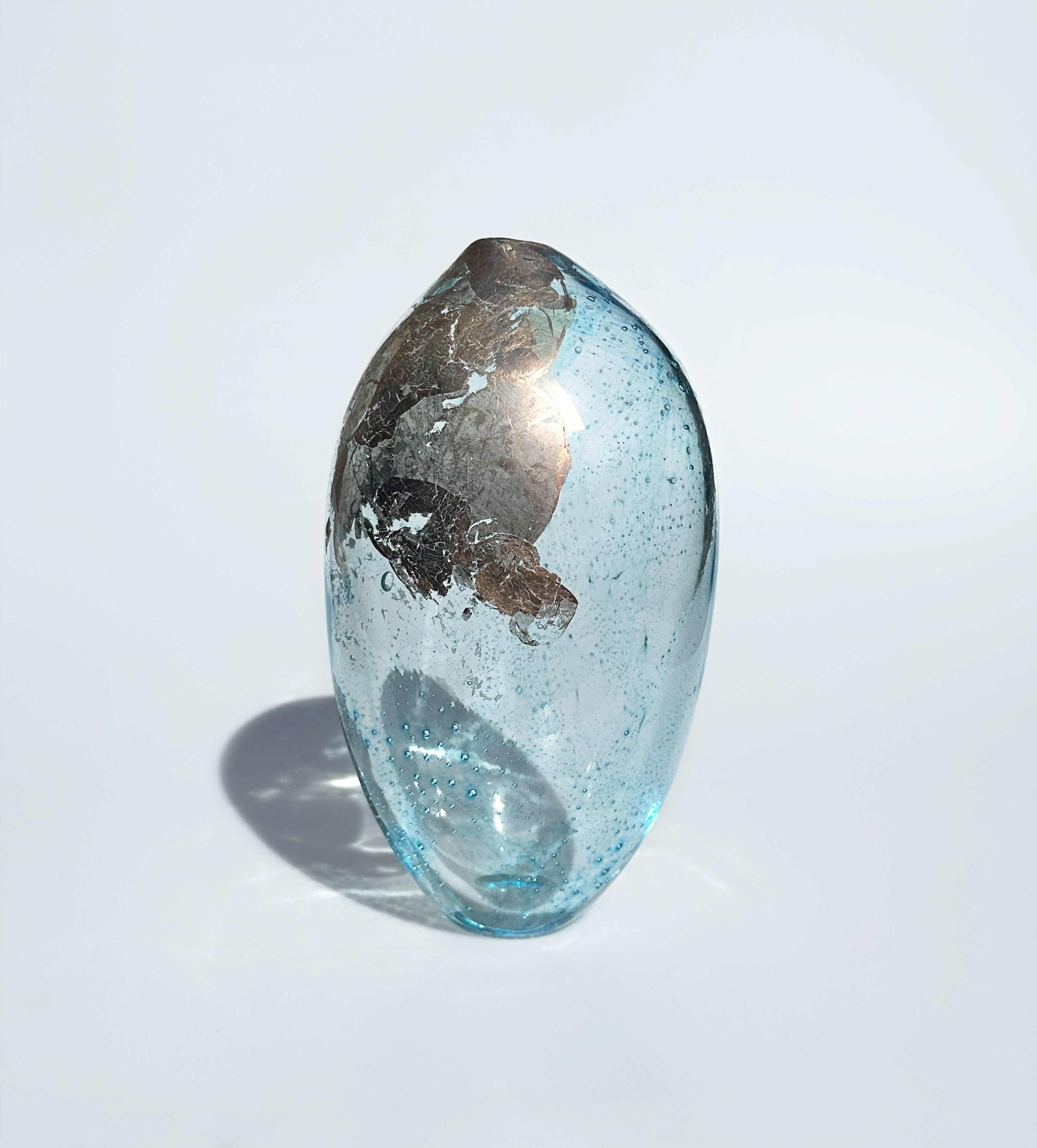 Inspired by the quiet drama of a storm rolling in from the ocean, the Cascade Collection captures a sense of atmosphere and anticipation within glass. Using a delicate technique with copper and silver leaf, each piece evokes the shifting ombré tones of distant stormy waters—soft gradients that move from light to dark with a dreamlike quality. The Cascade vases bring a striking, contemplative presence to any interior.