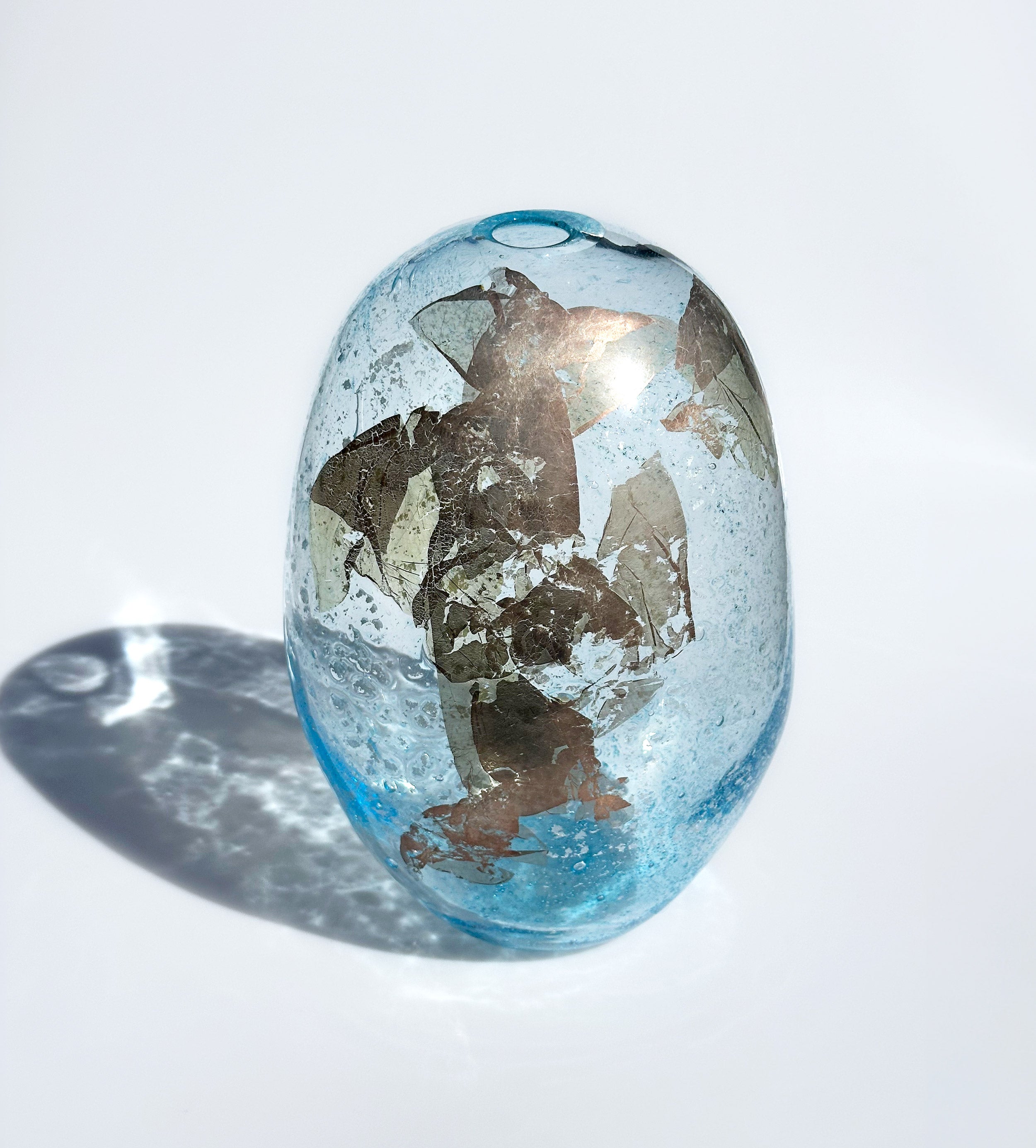 Inspired by the quiet drama of a storm rolling in from the ocean, the Cascade Collection captures a sense of atmosphere and anticipation within glass. Using a delicate technique with copper and silver leaf, each piece evokes the shifting ombré tones of distant stormy waters—soft gradients that move from light to dark with a dreamlike quality. The Cascade vases bring a striking, contemplative presence to any interior.