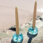 Our FLUX candlestick holders evoke the mesmerising flux of blue that also graces the collections Tumblers. Crafted with the same passion and precision as our renowned FLECK collection, these handblown glass candlestick holders are more than just holders; they are radiant works of art that infuse your space with an enchanting allure.