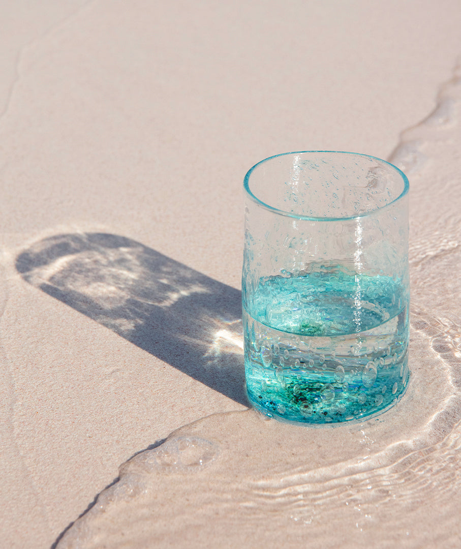 The FLUX tumblers combine clear handblown glass with copper leaf. Glass products have survived millennia and we recommend treating Moltenware with care.