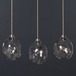 Each glass pendant is approximately 16cm diameter and 20cm length - not including fittings or cables. Cable lengths are 42cm/52cm/42cm respectively.