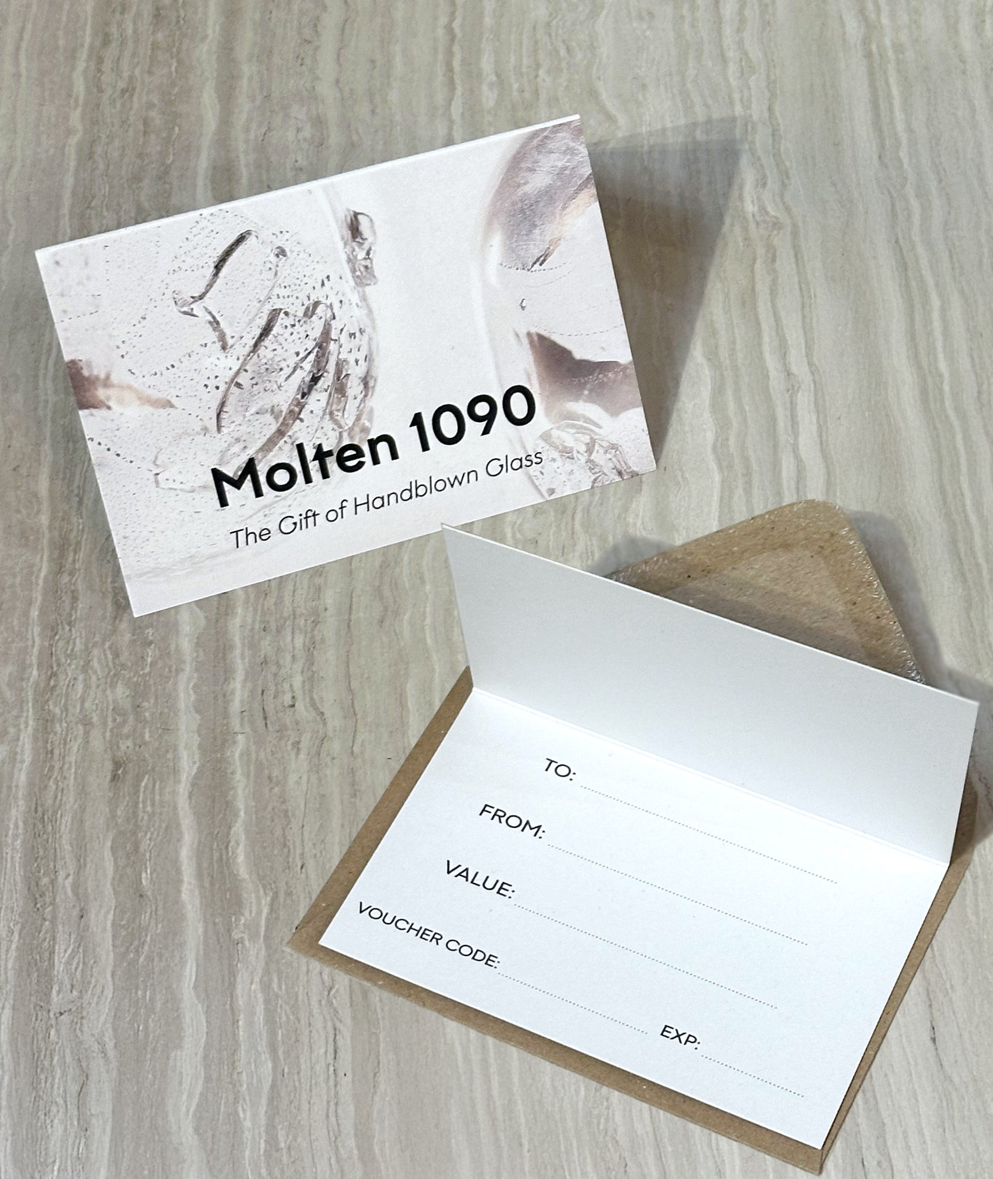 Sent digitally for convenience, or as a physical card upon request, they open the door to elegantly crafted tableware, unforgettable glassblowing experiences, and unique pieces that make every moment special.