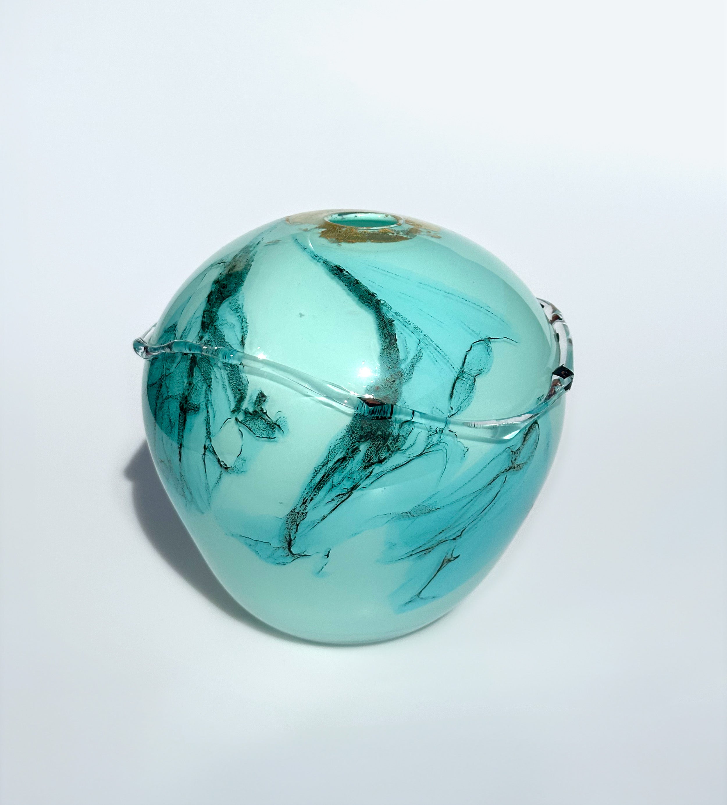The Submerged Buoy Collection draws inspiration from the quiet transformation of buoys left to the rhythm of the sea—gradually covered in algae, barnacles, and impact of time. Layers of copper and subtle touches of gold leaf echo the textures and tones of these submerged surfaces, creating pieces that feel both organic and luminous. With two copper trail pieces in the collection remaining, they bring a warm, evocative presence to any interior.